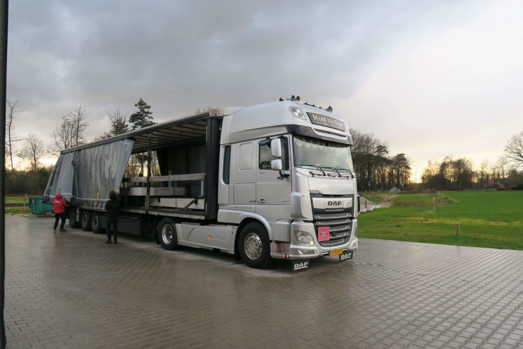 Gemak boven alles. We kunnen met een meeneemheftruck tot 2500 KG laden en lossen op de gewenste locatie. Je hoeft dus zelf geen heftruck of laaddock te hebben.